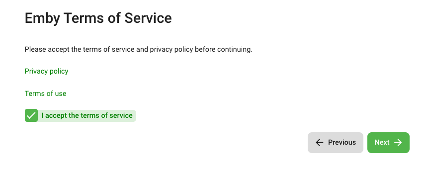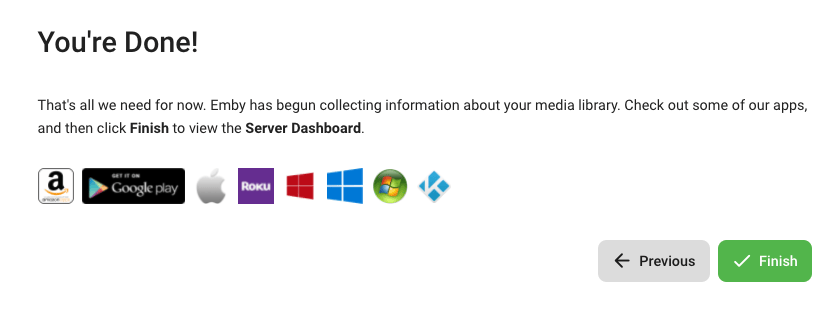 • New Password: A strong password you'll use to log into Emby