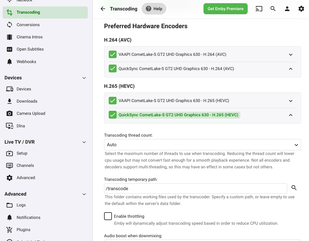 4. Under Transcoding temporary path, type in or choose /transcode.