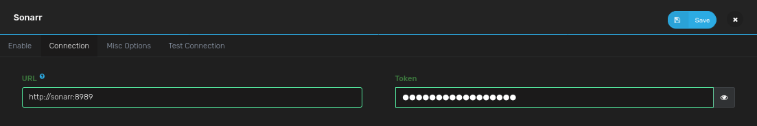 Set "Sonarr API Key": [Your Sonarr API Key|Install: Sonarr#9-retrieving-the-api-key]