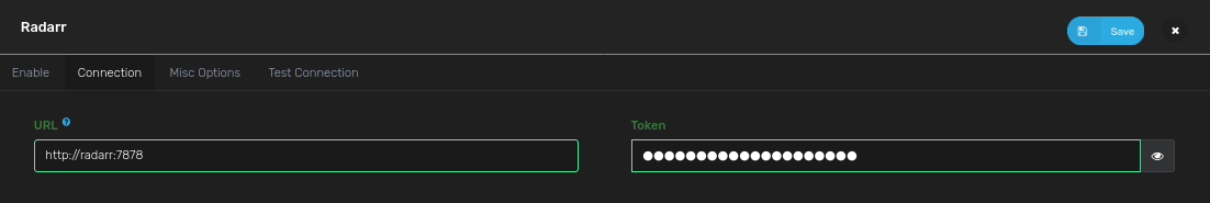 Set "Radarr API Key": [Your Radarr API Key|Install: Radarr#9-retrieving-the-api-key]