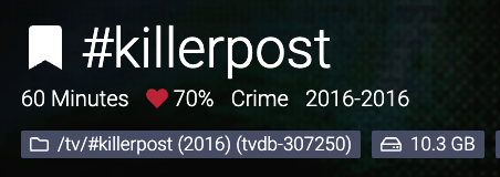 "Here's a new thing at /tv/#killerpost (2016)/Season 1/#killerpost - S01E01.mkv, tell your friends."